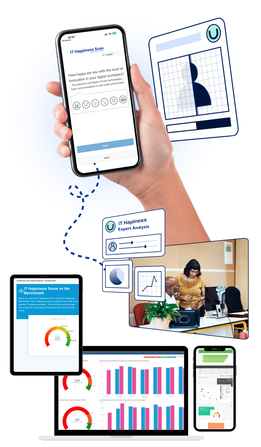 Meet eenvoudig de IT-Happiness in uw organisatie met slechts een paar eenvoudige stappen.here.