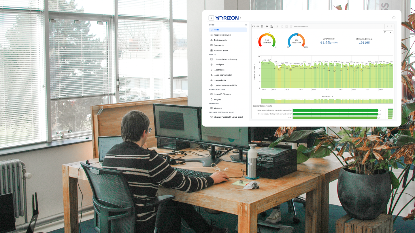 Al onze diensten komen samen in onze Programma op maat, een volledig beheerde onderzoeksoplossing die je helpt om de digitale medewerkerservaring continu te verbeteren. Het is gebaseerd op 20 jaar expertise en levert realtime feedback op 8 belangrijke gebieden, waarbij inzichten worden omgezet in actie. Want uiteindelijk gaat het niet alleen om meer meten.